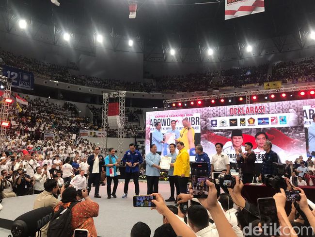 Dilansir detikNews, setelah Prabowo selesai berpidato, pembawa acara meminta Gibran berorasi. Saat itu Prabowo didampingi Gibran di atas panggung.
