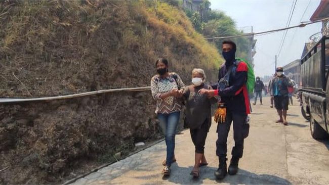 "Mata pedih dan batuk-batuk karena abunya kan bertebaran kemana-mana. Paling penting di atas kan Desa Ngaduman lansia, anak-anak, ibu hamil, ibu menyusui harus diselamatkan dengan evakuasi di sini. Keluhan rata-rata mata pedasnya dan sesak. Sesak kebanyakan karena panik," ujar Anis.