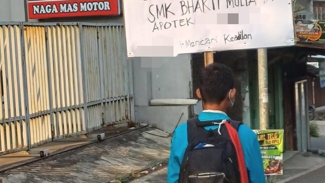 Foto seorang siswa SMK Bhakti Mulia menuntut keadilan karena dituduh mencuri di tempat Praktik Kerja Lapangan (PKL) viral di media sosial. Aksi itu dilakukan oleh pelajar berinisial MI (18) usai dituduh mencuri.