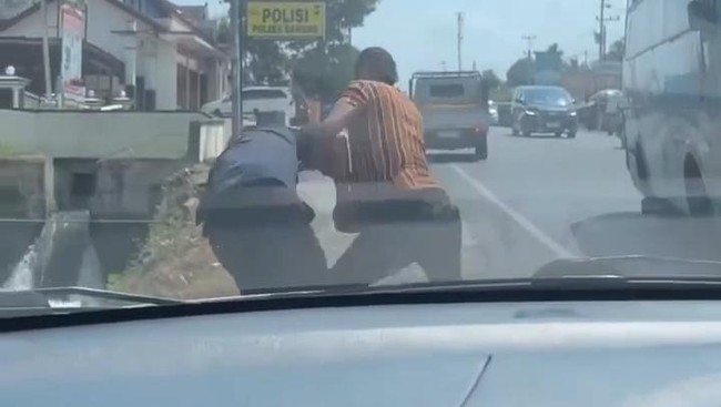 Sebuah video yang memperlihatkan dua sopir bus saling adu jotos viral di media sosial. Diduga, pemicunya adalah karena rebutan penumpang.