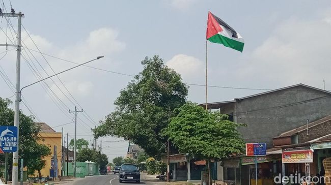 Pantauan detikJateng, terlihat empat bendera Palestina terpasang. Dua bendera dengan ukuran sekitar 1,5x3 meter itu berkibar di tepi jalan raya. Bendera ditopang dengan bambu panjang.