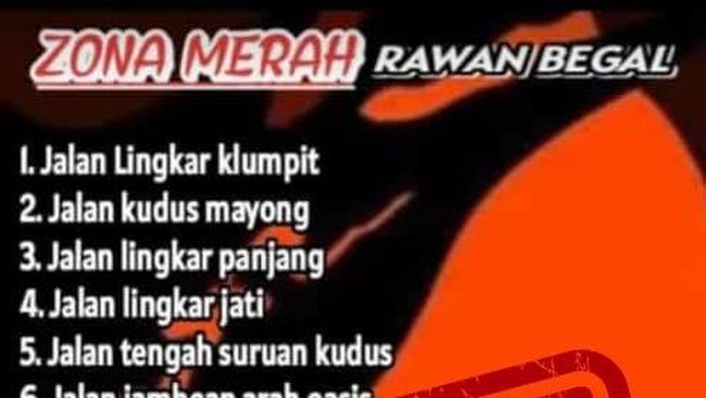 Kapolres Kudus AKBP Dydit Dwi Susanto mengatakan postingan daerah zona merah kejahatan rawan begal di Kudus tidak benar. Dydit mengimbau kepada masyarakat agar tidak langsung percaya dengan kabar di media sosial.