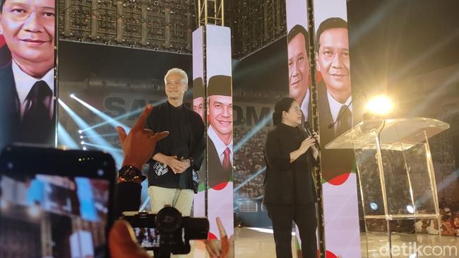 Pada awal pidatonya, Puan beberapa kali menanyakan ke para pendukung apakah mereka takut mendukung Ganjar-Mahfud, yang dijawab 'tidak' oleh massa.