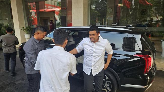 Menurut pantauan tim detikNews, Bobby datang mengenakan kemeja putih dan menaiki mobil Hyundai Palisade hitam.