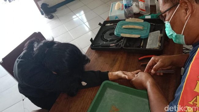 "Saya gunakan gerinda mini karena cara lain tidak memungkinkan. Akhirnya saya potong dengan gerinda, sekitar dua menit sudah lepas dan tidak lagi kesakitan," imbuh Daryana.