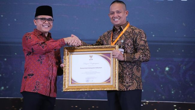 Penghargaan diberikan langsung oleh Menteri PANRB, Azwar Anas kepada Bupati Kebumen Arif Sugiyanto di Hotel Bidakara, Jakarta Selatan pada Selasa (21/11/2023).