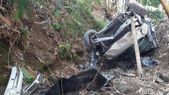 Kemudian di tikungan tajam itu mobil bablas menabrak guardrail atau pagar pembatas jalan. Lalu mobil itu menabrak pohon metir dan bablas terjun ke ladang tanaman bawang merah, hingga dasar jurang.