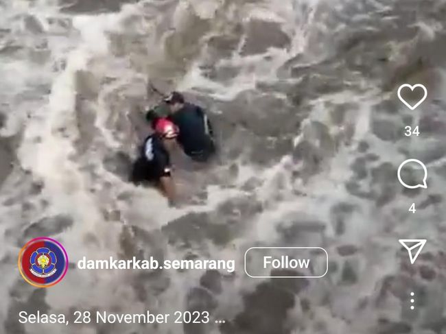 Video momen evakuasi pemancing itu diunggah Damkar Kabupaten Semarang lewat akun Instagram @damkarkab.semarang, Selasa (28/11). Dilihat detikJateng, dalam video itu terlihat petugas Damkar turun ke sungai menggunakan tali dari atas jembatan.