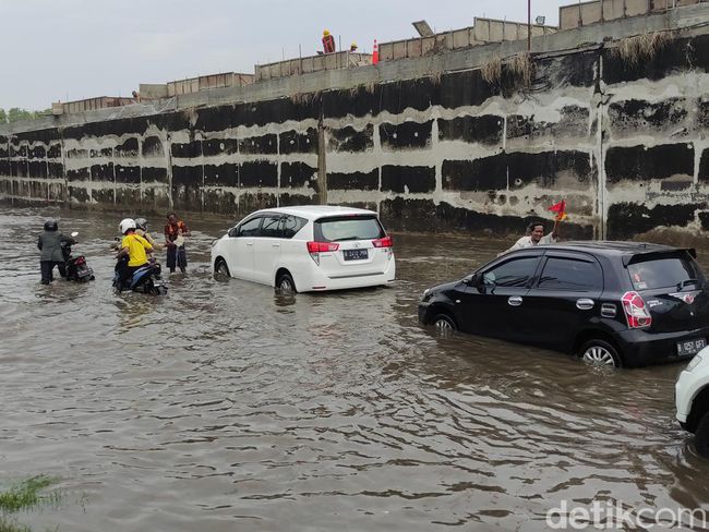 Seorang sopir ojek online, Jumaini, menyebut genangan sore itu sudah lumayan surut. Adapun saat pagi, pemotor sampai tidak berani menerobos karena khawatir mogok.