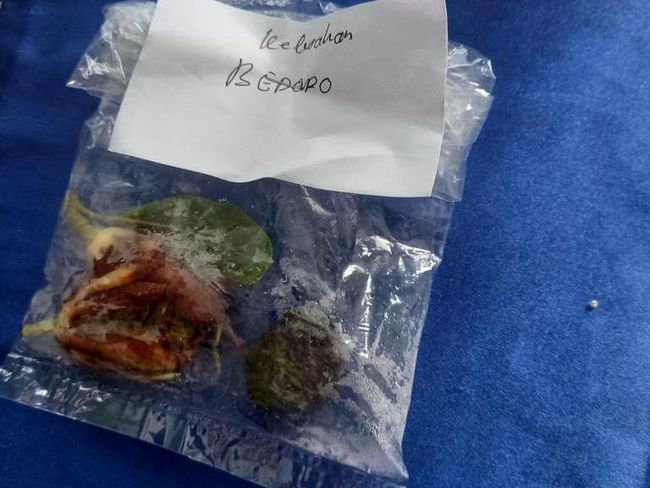 Dari foto yang diterima detikJateng, Rabu (29/11), pada bungkusan berupa plastik bening itu terdapat tulisan nama-nama kantor desa yang dituju. Plastik itu berisi bunga kantil, bunga warna putih, beras kuning, telur, dan menyan hio.
