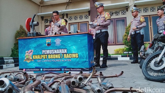 Polres Klaten selama tahun 2023 telah menilang 4.109 pelanggar lalu lintas yang menggunakan knalpot brong atau tidak standar. Ironisnya, mayoritas pelanggar tersebut ternyata para pelajar.