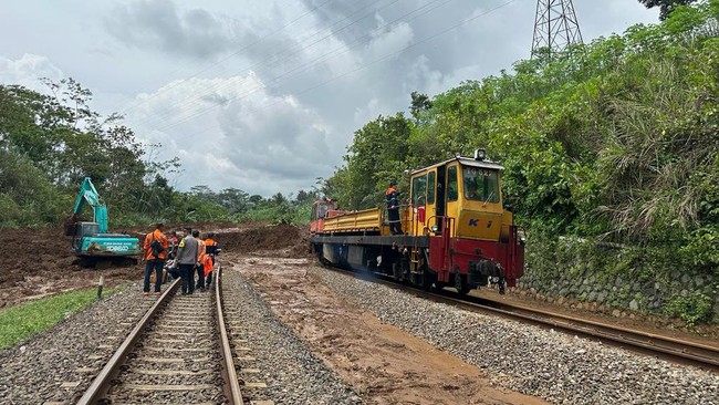 Diberitakan sebelumnya, jalur rel kereta api (KA) di KM 340+100 antara Stasiun Karanggandul-Karangsari, Banyumas, tertimpa longsor pada Senin (4/12) dini hari. Akibatnya sejumlah perjalanan KA terganggu.