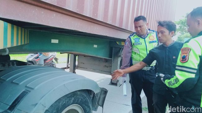 "Terpeleset atau terserempet jatuhnya saya tidak tahu pasti. Langsung jatuh ke jalan di depan roda belakang kontainer, truk kan jalan jadi terlindas," kata Rangga.