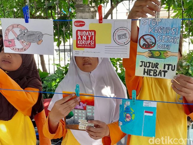Hal itu tampak diterapkan oleh beberapa poster karya siswa yang memilih tikus berdasi sebagai simbol pelaku korupsi. Salah satunya poster karya Wuning (11), siswa kelas 6 SDN Bromontakan yang menggambar tikus bertulisan 'Stop korupsi sejak dini, jujur itu hebat'.