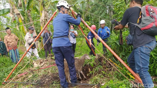"Untuk kendala (proses evakuasi) kedalaman sama diameter sumur hanya 80 cm. Kondisi kambing keempat hidup semua," kata Hendra.