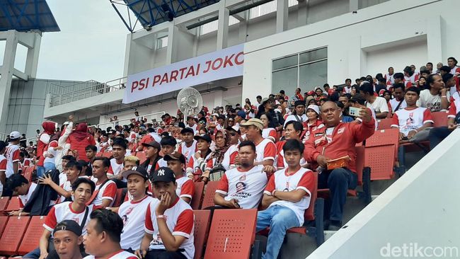 Massa Partai Solidaritas Indonesia (PSI) mulai memadati Stadion Jatidiri Semarang, Jawa Tengah. Massa mulai dihibur dengan suguhan artis Ibu Kota.