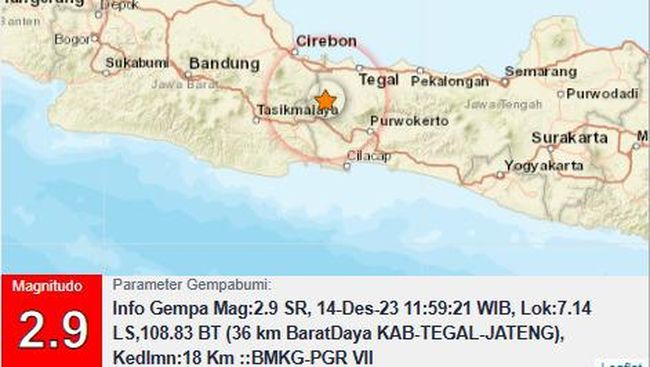 "Info Gempa Mag:2,9, 14-Des-23," kata Badan Meteorologi, Klimatologi, dan Geofisika (BMKG) dalam keterangan tertulisnya, Kamis (14/12/2023).