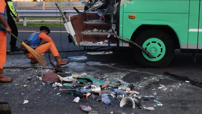 "Diperoleh informasi bahwa rombongan bus acara Literasi Kebhinekaan SMP N 1 Sentolo tujuan ke Bali, berangkat sejak tanggal 17 Des 2023, saat perjalanan pulang ke Jogja sampai Sragen tepatnya jalan Tol Sragen KM 508 sekira pukul 05.00 WIB, bus Aji Jaya Bawen Nopol A 3037 OV yang ditumpangi rombongan mengalami kecelakaan menabrak truk," kata Novi saat dimintai konfirmasi wartawan, dikutip dari detikJogja.