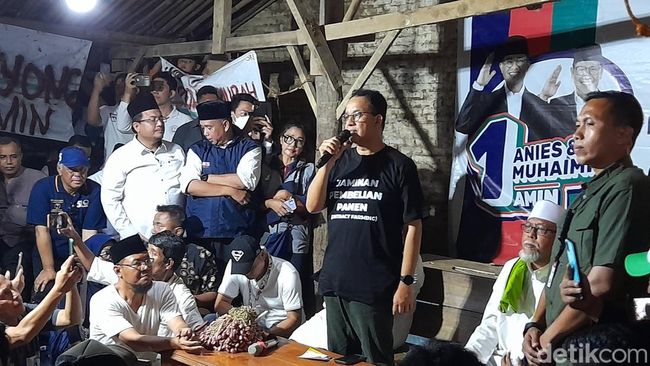 Anies datang Sabtu (23/12/2023) sekitar pukul 21.30 WIB dan disambut ratusan warga yang ingin berswafoto. Acara sosialisasi dengan petani bawang ini sempat molor beberapa jam. Sebelumnya, Anies dijadwalkan datang pukul 15.30 namun karena terhadang macet, baru sampai lokasi pukul 21.30 WIB.