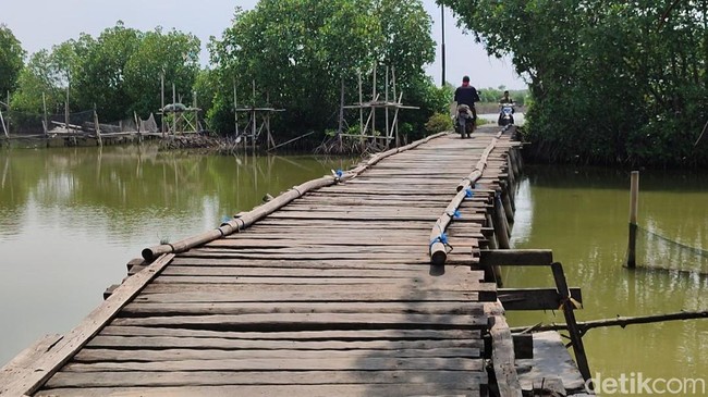 "Dulunya itu cuma bambu biasa disusun dua atau tiga. Ceritanya warga itu kalau berangkat sekolah itu pakai celana pendek terus bawa bukunya diangkat, terus kalau jembatan rusak ya (melintasi sambil) nyebur," kata Haryanto.