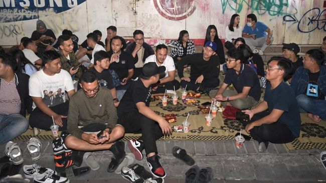 Menikmati libur akhir tahun, Muhammad Zinedine Alam Ganjar bertemu dan bercengkrama bersama komunitas generasi muda di kawasan Slamet Riyadi, Surakarta, Jawa Tengah, Selasa (26/12). Di kesempatan ini, Alam berharap komunitas bisa semakin produktif menciptakan karya untuk kemajuan daerah.