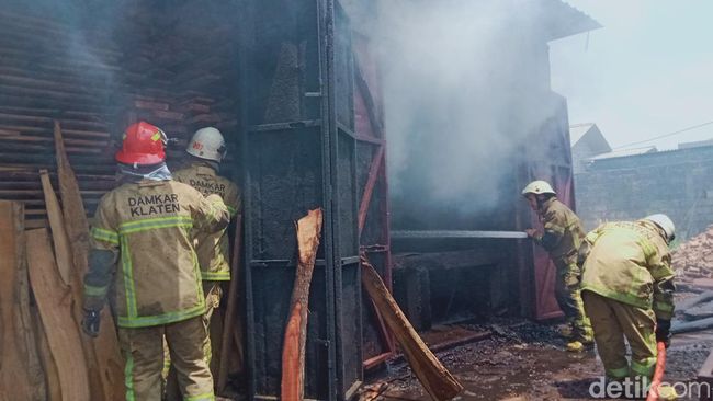 Tempat pengeringan kayu atau oven di Dusun Mudal, Desa Karanganom, Kecamatan Klaten Utara, Klaten, terbakar. Empat kubik kayu jenis mahoni dan mindi ludes terbakar.