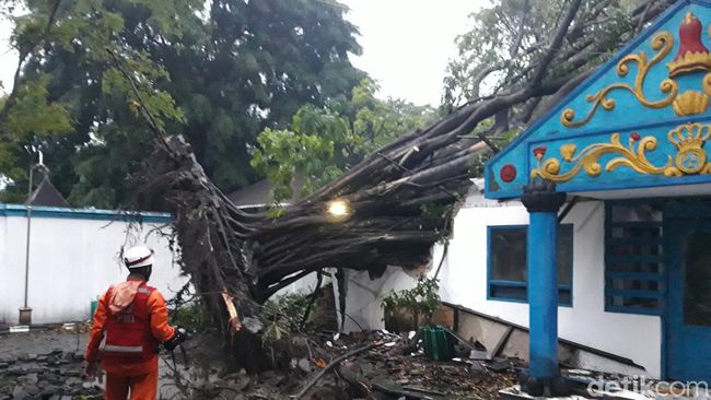 "Ada dua pohon beringin yang tumbang. Usianya ya puluhan tahun, diameter sekitar 2-3 meter," jelasnya.