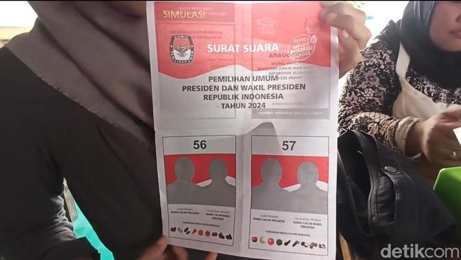 Dilihat detikJateng, surat suara tersebut berwarna merah dan putih. Di sisi atas kiri terdapat tulisan 'simulasi'.