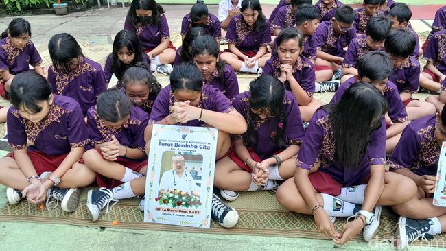 "Hari ini keluarga besar SD warga khususnya masyarakat Kota Surakarta, siswa-siswi SD Warga berdoa buat dokter tercinta kita, dokter Lo yang kemarin wafat," kata Agus kepada awak media, usai aksi.