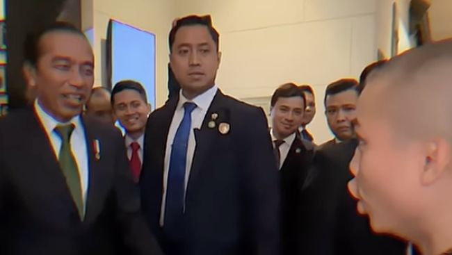 Setelah itu, video tersebut menampilkan momen pertemuan Cellos dengan Jokowi. Cellos pun tanpa canggung mengajak mantan Wali Kota Solo itu melakukan selebrasi