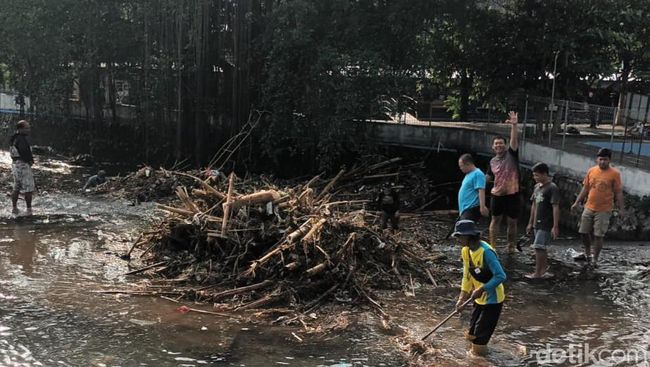 Pembersihan sampah di sungai ini melibatkan warga sekitar. Mereka turun ke sungai dan mengangkati kayu-kayu dan bambu itu ke pinggir. Yang panjang dan besar dipotongi terlebih dahulu.