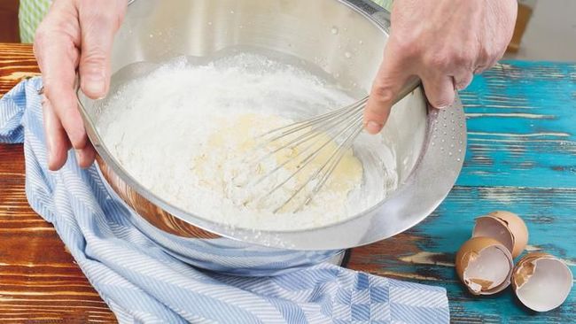 - Add milk, butter or oil, and egg. Mix the dry ingredients. Whisk until just moistened. Remember, do not overmix.