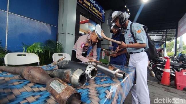 "Kalau seneng sih masih seneng ya (suka pakai knalpot brong), tapi ya sadar aja kalau mengganggu," timpal siswa lainnya yang menyerahkan knalpot brong, Almer.