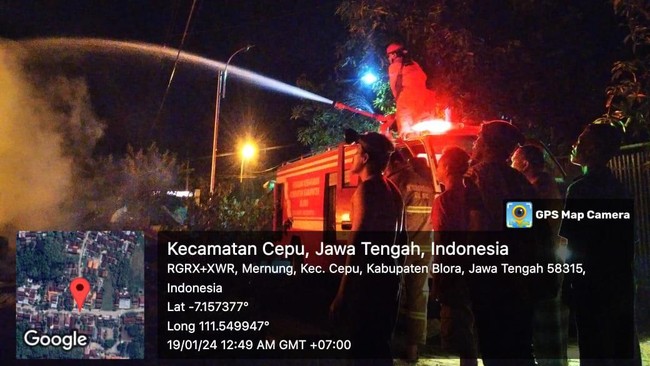 "Kebakaran rumah milik Jaswadi Desa Mernung, Kecamatan Cepu, Kabupaten Blora. Kami mendapat laporan kejadian kebakaran itu kemudian meluncur ke lokasi bersama tim gabungan untuk melaksanakan pemadaman," ungkap TRC BPBD Blora Agung Tri, Jumat (19/1/2024).