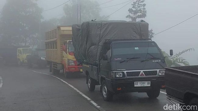Puluhan kendaraan tak bisa melintas karena jalan Boyolali-Magelang itu tertutup total. Antrean panjang kendaraan khususnya yang dari arah Boyolali menuju Magelang.