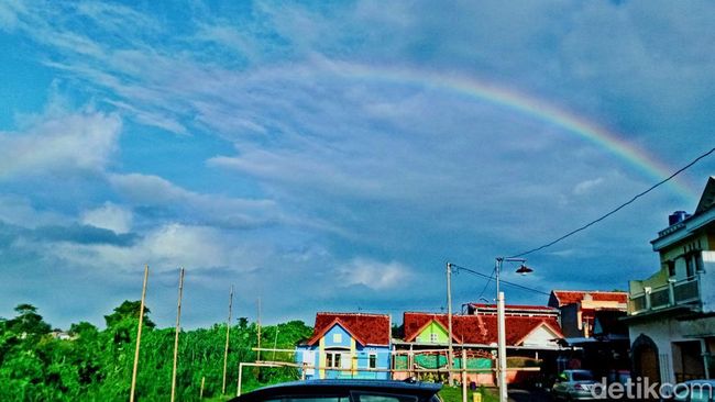Pelangi tersebut terlihat pada Minggu (21/1/2024), mulai pukul 06.30 WIB. Ujungnya pertama kali terlihat di arah barat daya dengan warnanya yang beraneka.