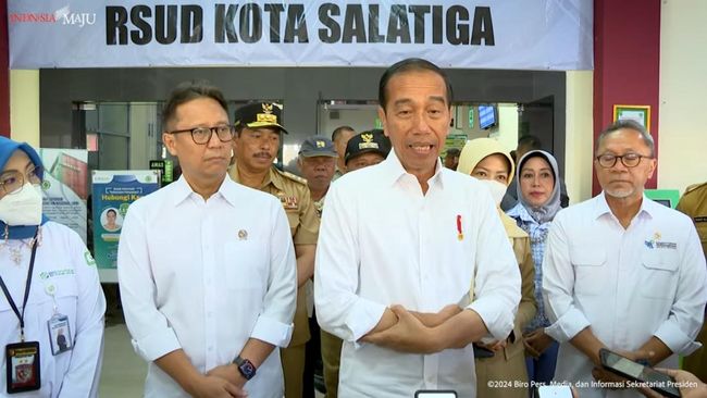 "Saya ingin melihat pelayanan rumah sakit terhadap pasien atau masyarakat yang ingin dilayani karena kita tahu Kartu Indonesia Sehat kita, KIS itu sudah diberikan kepada kurang lebih 96 juta dan yang ikut BPJS sekarang ini sudah 267 juta sudah 95 persen lebih sedikit dan saya tanyakan tadi apakah ada pungutan, nggak ada. Apakah pasien nginep di rumah sakit dibatasi juga tidak. Saya kira ini bagus," kata Jokowi saat memberikan keterangan pers, dilihat di akun YouTube Sekretariat Presiden, Senin (22/1/2024).