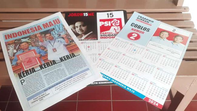 Seperti foto yang dikirim ke detikJateng, ada lembaran tabloid hingga kalender yang diterima warga. Tabloid itu bertuliskan 'Indonesia Maju'. Pada tabloid itu bergambar Capres dan Cawapres Prabowo Subianto-Gibran Rakabuming Raka.