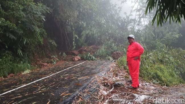 Ia menyebut hujan deras yang masih mengguyur sekitar lokasi kejadian membuat upaya pembersihan material terganggu. Sehingga untuk sementara, akses jalan masih tertutup.