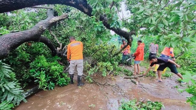 Selain itu pohon tumbang sempat menutup jalan warga. Namun saat ini sudah dibersihkan.