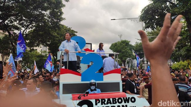 Capres dan cawapres nomor urut dua Prabowo Subianto dan Gibran Rakabuming Raka kampanye dengan tema Kirab Kebangsaan di Semarang sore ini. Prabowo dan Gibran disambut riuh massa pendukungnya.