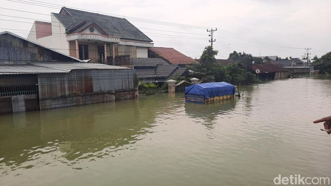 Pantauan detikJateng di lokasinya tepatnya Desa Karanganya,r Kabupaten Demak, genangan banjir di jalanan masih mencapai 1,5 meter. Terpantau truk terendam banjir banjir hanya terlihat baknya saja.