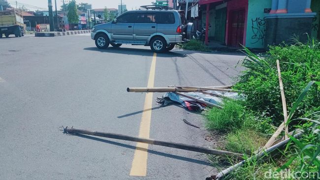 Kendaraan dari arah Solo harus menghindari rangka bambu yang menyisakan paku-paku dan kawat itu. Kondisi serupa terjadi di jalan-jalan kabupaten.