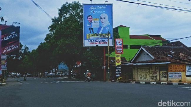 Baliho besar ukuran 3x3 meter itu masih terpasang di jalan Ir Soekarno, Buntalan, Klaten Tengah, tepatnya di timur terminal Ir Soekarno. Baliho tersebut terpasang di rangka besi titik reklame dekat baliho hari jadi Kabupaten Klaten.