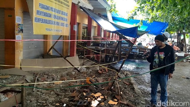 "Kejadiannya sekitar jam satu lebih. (Sebelumnya) yang sana ada retak-retak (pojok kiri). Pedagang langsung gempar dan penasaran melihat," ungkapnya.