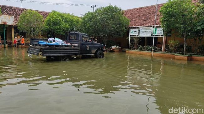Kondisi lokasi pemungutan suara susulan (PSS) alias coblosan susulan Pemilu 2024 di SDN Wonorejo 1, Kedungbanteng, Kabupaten Demak, hingga kini halamannya masih terendam banjir. Sejumlah warga sekitar juga masih mengungsi.