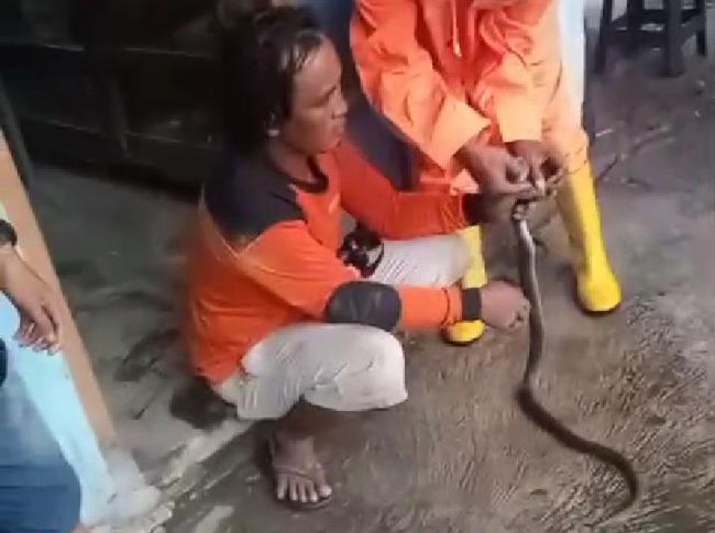 Seekor ular kobra Jawa sepanjang satu meter masuk ke rumah seorang warga Dusun Walikukun, Desa Japanan, Kecamatan Cawas, Kabupaten Klaten. Ular itu masuk dan bersembunyi di dekat sumur saat hujan mengguyur.