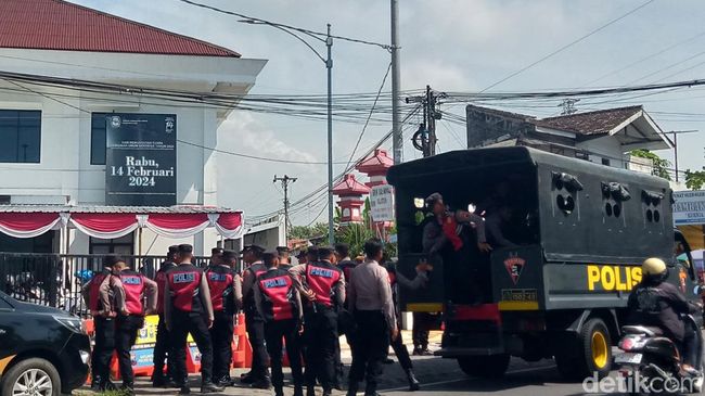 Pantauan detikJateng, sekitar pukul 09.00 WIB persiapan pleno KPU dilakukan dengan absensi peserta. Personel Polres Klaten yang dipimpin Kabag Ops Kompol M Aslam memasang water barrier di depan pintu masuk KPU.