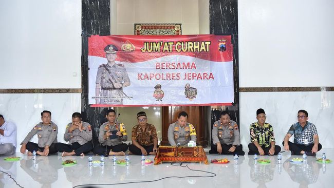 Imbauan tersebut disampaikan Kapolres Jepara AKBP Wahyu Nugroho Setyawan beserta jajarannya saat menggelar kegiatan Jumat Curhat yang diikuti oleh Forkopimcam Bangsri, Petinggi beserta perangkat hingga warga masyarakat yang bertempat di Masjid Istiqomah Dukuh Puring, Desa Jerukwangi Kecamatan Bangsri, Kabupaten Jepara, Jumat (1/3/2024).