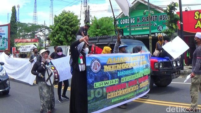 Peserta aksi yang mengatasnamakan Aliansi Rakyat Penggugat Banjarnegara mendorong untuk dilakukan hak angket di DPR RI. Aksi ini juga menuntut untuk melengserkan Presiden Jokowi lantaran dianggap sudah melanggar konstitusi.